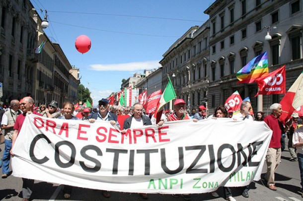A meno di 24 ore dall’attacco lanciato dall’assemblea di Federalberghi, il capo del governo torna ad attaccare la Carta repubblicana. Non è una novità: LeG ha documentato con il Libretto nero dei diritti perduti tutti i colpi inferti alla Costituzione da questo governo nei primi due anni di legislatura.
