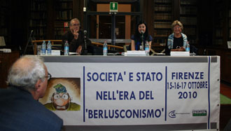 * Il testo della relazione di Santomassimo al convegno «Società e stato, sfera del berlusconismo» in corso a Firenze, organizzato da Libertà e giustizia e dalla rivista storica Passato e presente, è stato pubblicato da Il Manifesto, domenica 16 ottobre.