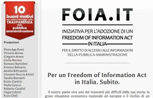 La prima mossa della coalizione – e visto che parliamo di trasparenza, è bene essere chiari: chi scrive è tra i promotori – è stata la pubblicazione del documento 1 “Dieci buoni motivi per volere una legge sulla trasparenza della Pubblica amministrazione” su un sito web (www.foia.it 2) che prende il nome dal Freedom of Information Act, la legge americana che consente a chiunque di domandare copia degli atti della pubblica amministrazione.