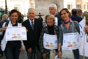 “E poi – continuiamo col megafono, mentre la voce inizia a faticare – vogliamo che le leggi che ci sono, siano rispettate. Come quella che dal 1957 prevede che chi ha concessioni televisive dallo Stato, non può entrare in Parlamento! C’è una petizione che ha già ricevuto oltre 50 mila firme; qui si può firmare”.