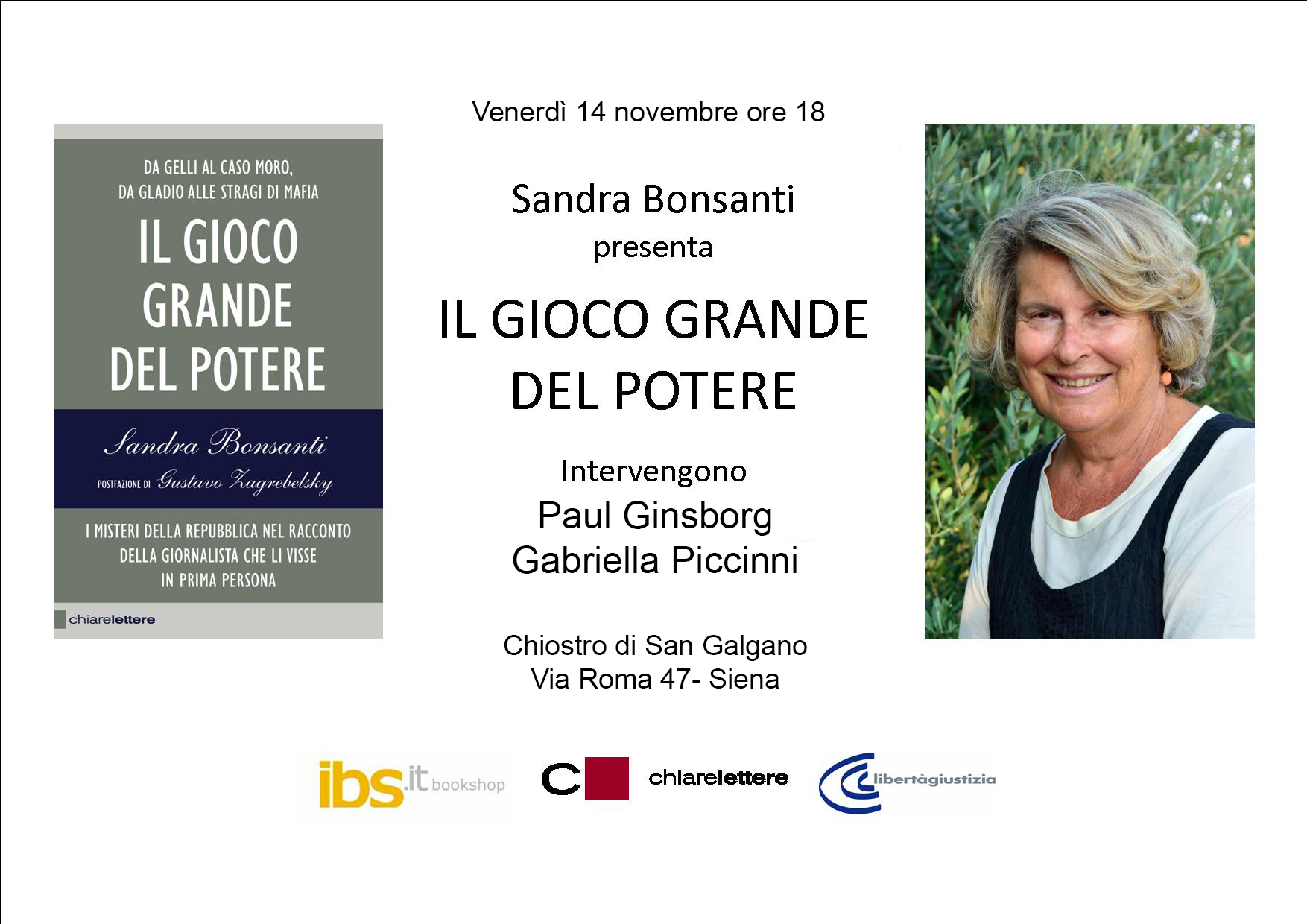 Il gioco grande del potere di Sandra Bonsanti (Chiarelettere 2013, € 12,90) è un libro necessario. E’ una lettura che consiglierei a tutti i giovani che non vogliano ripetere l’errore della mia generazione: di nascere, per così dire, alla cittadinanza con gli occhi rivolti soltanto altrove, perduti in distratte lontananze, ignorando completamente il lascito della generazione precedente, quella dei nostri padri e madri. Noi fummo iniziati alla “politica” ignorando nel modo più radicale proprio quelle ragioni che avevano spinto i nostri padri a segnare alla politica un limite preciso e invalicabile di compatibilità etica, una norma fondamentale di tutela della pari dignità e dei diritti di ognuno, e anche di elementare istituzione dei doveri di cittadinanza. Fu stabilito chiaramente anche cosa ognuno doveva a tutti gli altri, come impegno sancito dal patto fondativo di questo Stato. Ma noi fummo iniziati alla politica senza esserlo a quella conoscenza morale che aveva espresso, dopo le catastrofi della prima metà del Novecento, il neocostituzionalismo e la sua idea di fondo: una politica che non abbia fuori di sé il suo limite e il suo fondamento si distrugge come governo degli stati secondo ragione e giustizia, e diventa soltanto arte di acquistare e mantenere il potere. La politica senza una vigente norma pre-politica (che stabilisca i confini del lecito perseguimento degli interessi particolari) abolisce presto la distinzione fra uno Stato e un’associazione a delinquere di stampo mafioso.