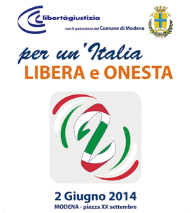 Libertà e Giustizia ha organizzato, per lunedì 2 giugno, un importante appuntamento modenese per festeggiare la Repubblica e la Costituzione. Come si legge nel comunicato, “all’indomani delle elezioni europee e del grande risultato ottenuto dal Pd di Matteo Renzi, Libertà e Giustizia continuerà nell’impegno che ha assunto fin dalla sua fondazione nel 2002. Vigilare sui progetti di riforma istituzionale, elettorale, della giustizia, della libertà di informazione. Nella manifestazione del 2 giugno a Modena riaffermeremo con limpidezza e determinazione questo nostro impegno prioritario”. Durante la giornata, sul palco si alterneranno Gustavo Zagrebelsky, Sandra Bonsanti, Stefano Rodotà, Lorenza Carlassare, Marco Travaglio, Elisabetta Rubini, Carlo Smuraglia, Gian Carlo Caselli, Alberto Vannucci, Paul Ginsborg, Gaetano Azzariti e Roberta De Monticelli. Sarà inoltre presente Fabrizio Gifuni che reciterà brani sulla Resistenza e sulla libertà. Diverse le associazioni che hanno già manifestato la propria adesione: l’Anpi, il Gruppo Abele di don Luigi Ciotti, l’associazione “Salviamo la Costituzione: aggiornarla non demolirla” presieduta da Alessandro Pace, la Cgil, la Fiom e il Coordinamento per la Costituzione della Provincia di Modena. Gli organizzatori della giornata lanciano infine un appello: “Perché la manifestazione abbia successo, aiutaci a sostenere i costi”. È dunque possibile versare un contributo seguendo le istruzioni indicate a questo link: https://stage.libertaegiustizia.it/per-un-italia-libera-e-onesta/contribuisci-anche-tu/ –
