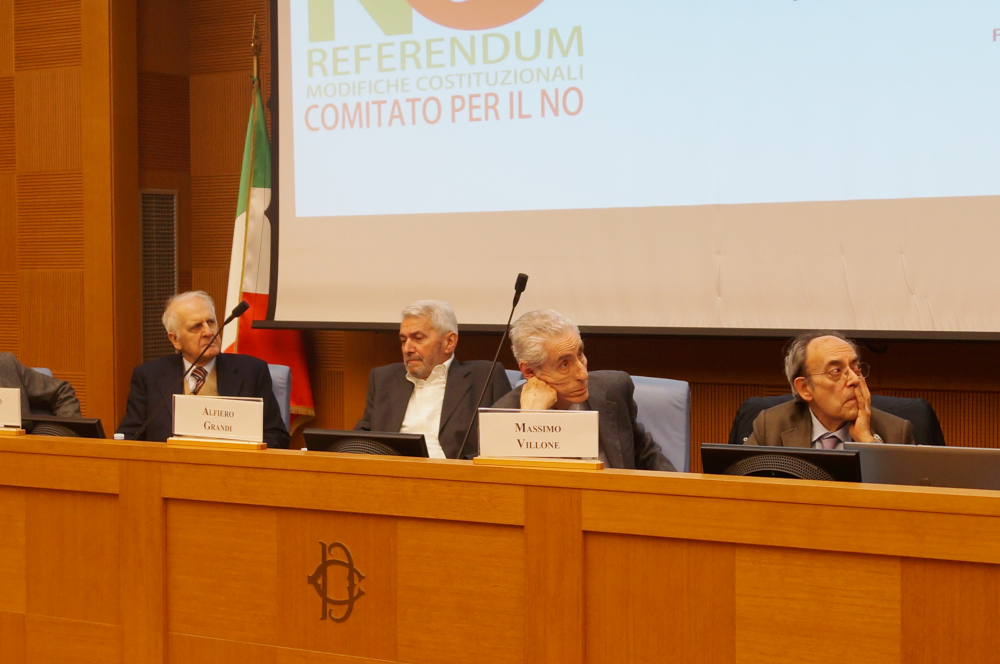 L’ iniziativa del 20 maggio dell’A.N.P.I. e del Comitato Bassa Val di Cecina per il NO nel referendum costituzionale e per l’abrogazione di alcune norme della legge elettorale Italicum, rivolta alla cittadinanza del nostri Comuni per promuovere la consapevole scelta sui quesiti proposti, ha presentato un ospite eccezionale: il Professor Massimo Villone, docente emerito di Diritto Costituzionale presso l’Università Federico II di Napoli, ex senatore nella XII-XII-XIV e XV legislatura con incarichi nelle Commissioni Affari Costituzionali, per le Riforma Costituzionali, per la Riforma della Pubblica Amministrazione, e perfino sulle “cause della mancata individuazione dei responsabili delle stragi (1994-1996)”.