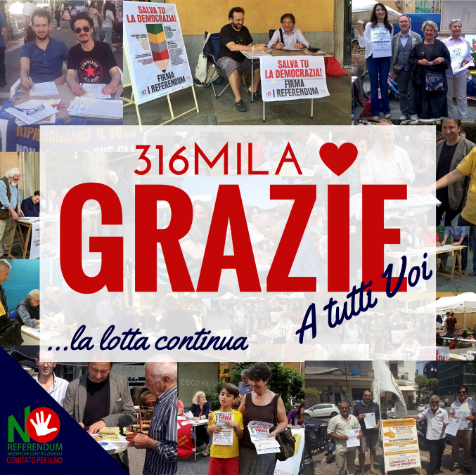 Torneremo nei prossimi mesi ad illustrare anche nel dettaglio i punti più critici e problematici di questa riforma costituzionale a dimostrazione dell’impatto che si avrà sulla vita di noi cittadini e dell’operazione politica che vi sottende, chiedendo a ciascuno di noi lo sforzo di studiare e riflettere (democrazia è anche conoscenza), senza cadere nella abbastanza penosa operazione della personalizzazione del referendum (pro o contro Renzi) o della “catastrofe” del paese come Confindustria, Coldiretti ed altri vanno preconizzando nei loro documenti di previsione economica.