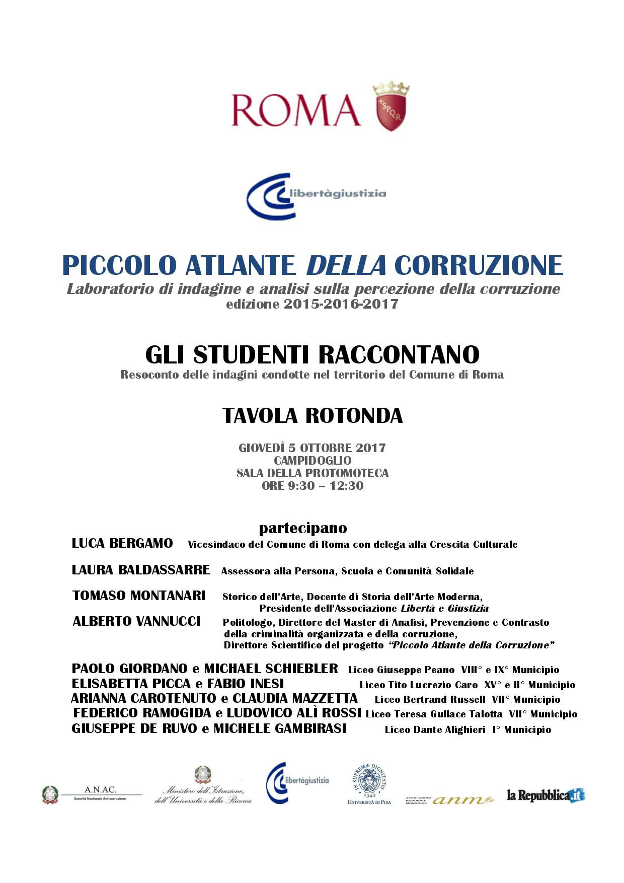 Terza edizione del progetto “Piccolo Atlante della Corruzione”, con cui si testa la percezione del fenomeno corruttivo in Italia da parte degli studenti. La ricerca è promossa dall’associazione Libertà e Giustizia in sei regioni italiane, Lazio, Sicilia, Campania, Lombardia, Piemonte e Veneto.