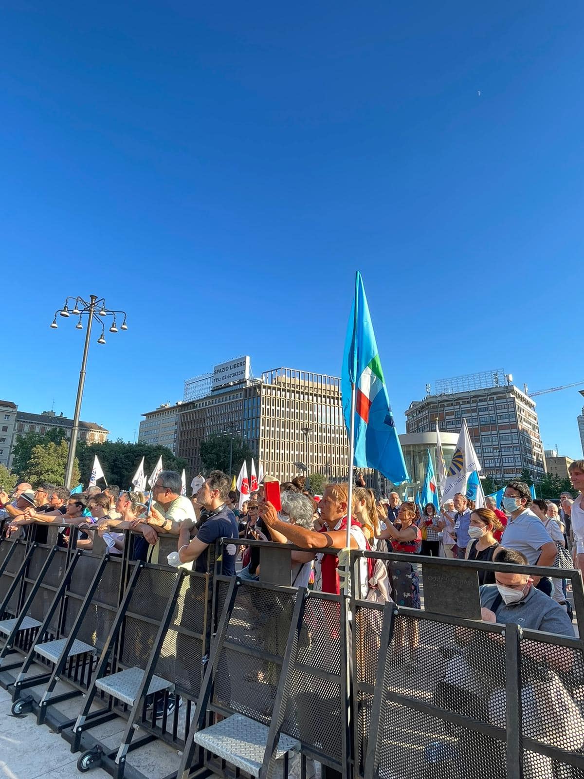 Piazza duca d’Aosta si è colorata di bandiere e striscioni ed ha accolto cittadini di ogni età che, sfidando il caldo rovente, hanno deciso di manifestare con la propria presenza che la ‘ndrangheta è un problema nazionale e che le infiltrazioni criminali nell’economia legale sono un’emergenza per la tenuta della democrazia. “Gratteri non si tocca” la frase più scandita dalla piazza.