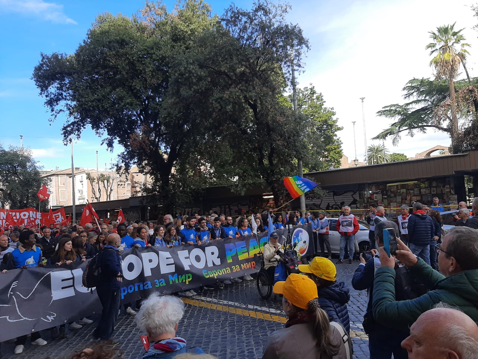 L’Associazione ha aderito alla manifestazione di Europe for peace “Cessate il fuoco subito, negoziato per la Pace!” del 5 novembre, insieme a Articolo 21, con Beppe Giulietti, presidente della Fnsi, e Giulia Giornaliste con la presidente Silvia Garambois.