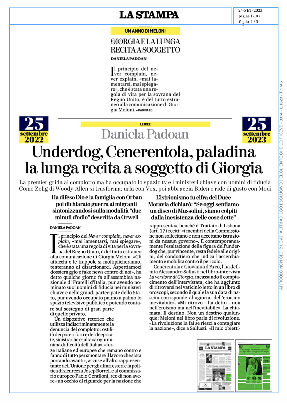 Un anno di governo di Giorgia Meloni, la prima donna Presidente del Consiglio. Un anno di governo della destra. Daniela Padoan, Presidente di Libertà e Giustizia, ne ha scritto su La Stampa di domenica 24 settembre. Qui sotto il testo integrale della sua analisi.