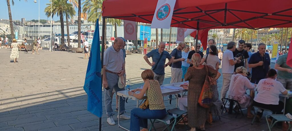 A Genova, dove già nei giorni scorsi sono state raccolte centinaia di firme, ieri si è tornati in piazza per proseguire con la mobilitazione. Tra i tanti volontari c’era Elisabetta Rubini, membro del Consiglio di Presidenza di Libertà e Giustizia. Che ringraziamo anche per le belle e significative foto che seguono.