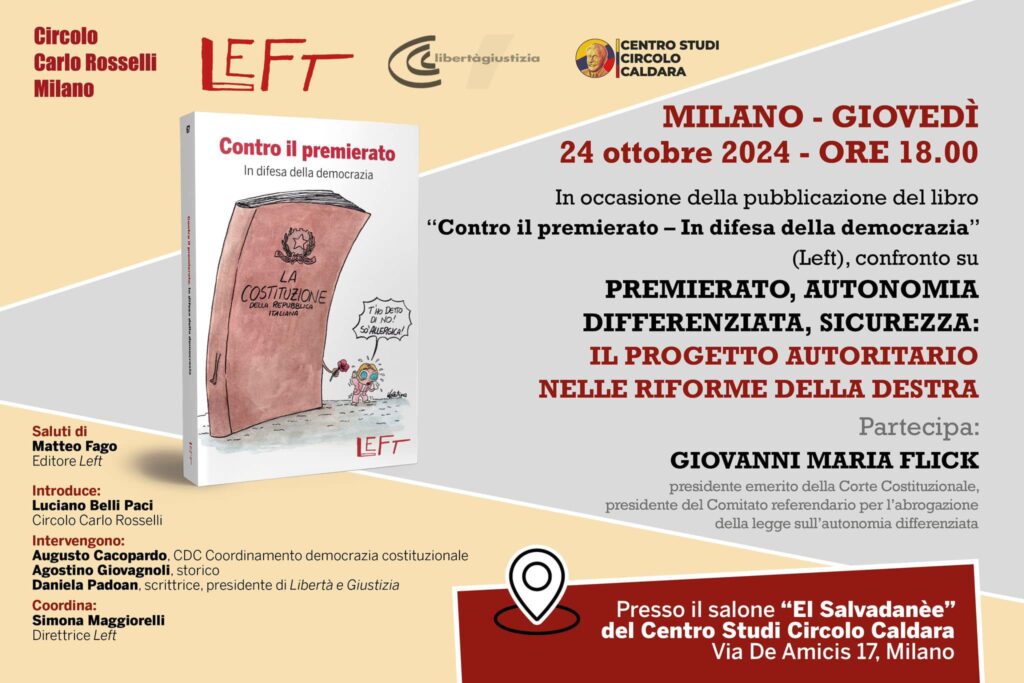 Giovedì 24 ottobre, a Milano un dibattito sulle riforme della destra e sul progetto autoritario, partendo dal libro di Left “Contro il premierato. In difesa della democrazia“.