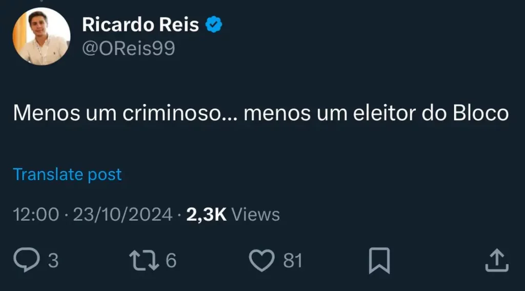 Nel primo caso il commento è quello di Ricardo Reis, assistente parlamentare di Chega, partito di destra portoghese del gruppo dei Patrioti per l’Europa, il gruppo di nazionalisti che fa riferimento al presidente ungherese Viktor Orbán: «Un criminale in meno e un elettore della sinistra in meno», ha scritto sul suo profilo X che ora risulta inesistente.