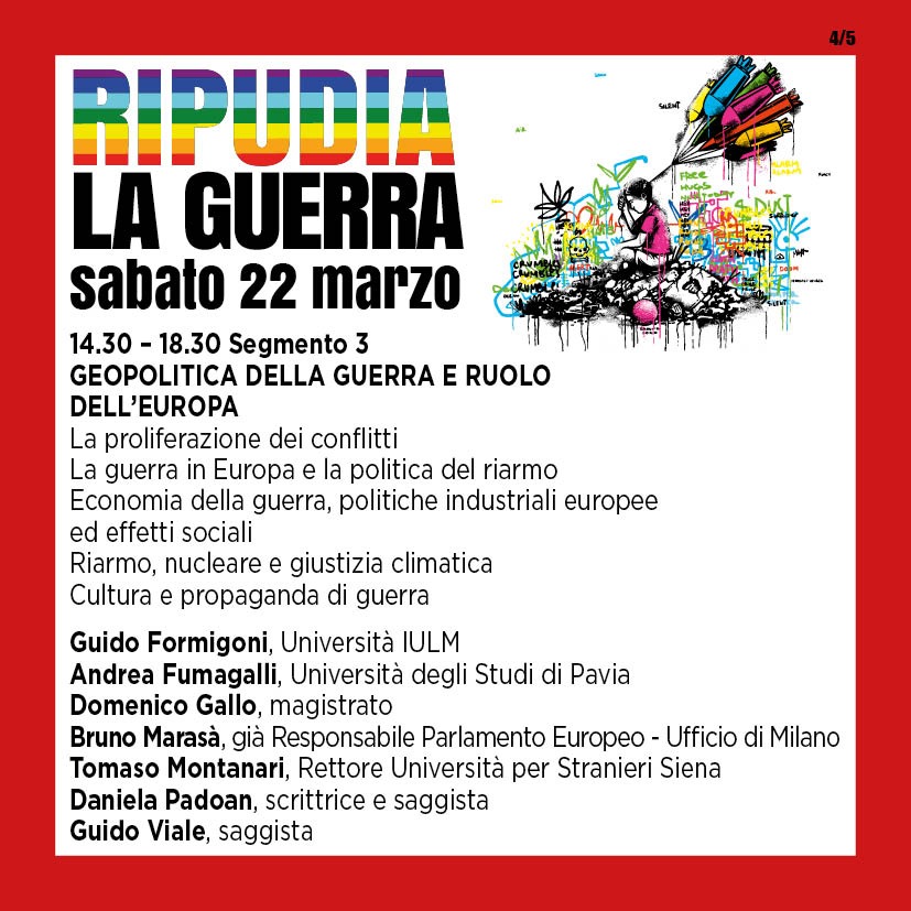 un focus sulla proliferazione dei conflitti, la guerra in Europa e la politica del riarmo, sull’economia della guerra, le politiche industriali europee ed effetti sociali, sul riarmo, il nucleare , sulla giustizia climatica, sulla cultura e sulla propaganda di guerra. Con: