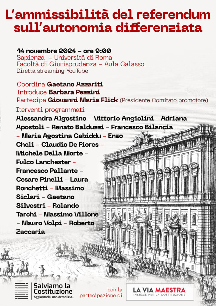 L’iniziativa promossa da “Salviamo la Costituzione”, in collaborazione con La Via Maestra, rappresenta un importante momento nella battaglia che tutte e tutti insieme stiamo conducendo per fermare questa legge e per riaffermare le ragioni dell’ammissibilità del quesito referendario.