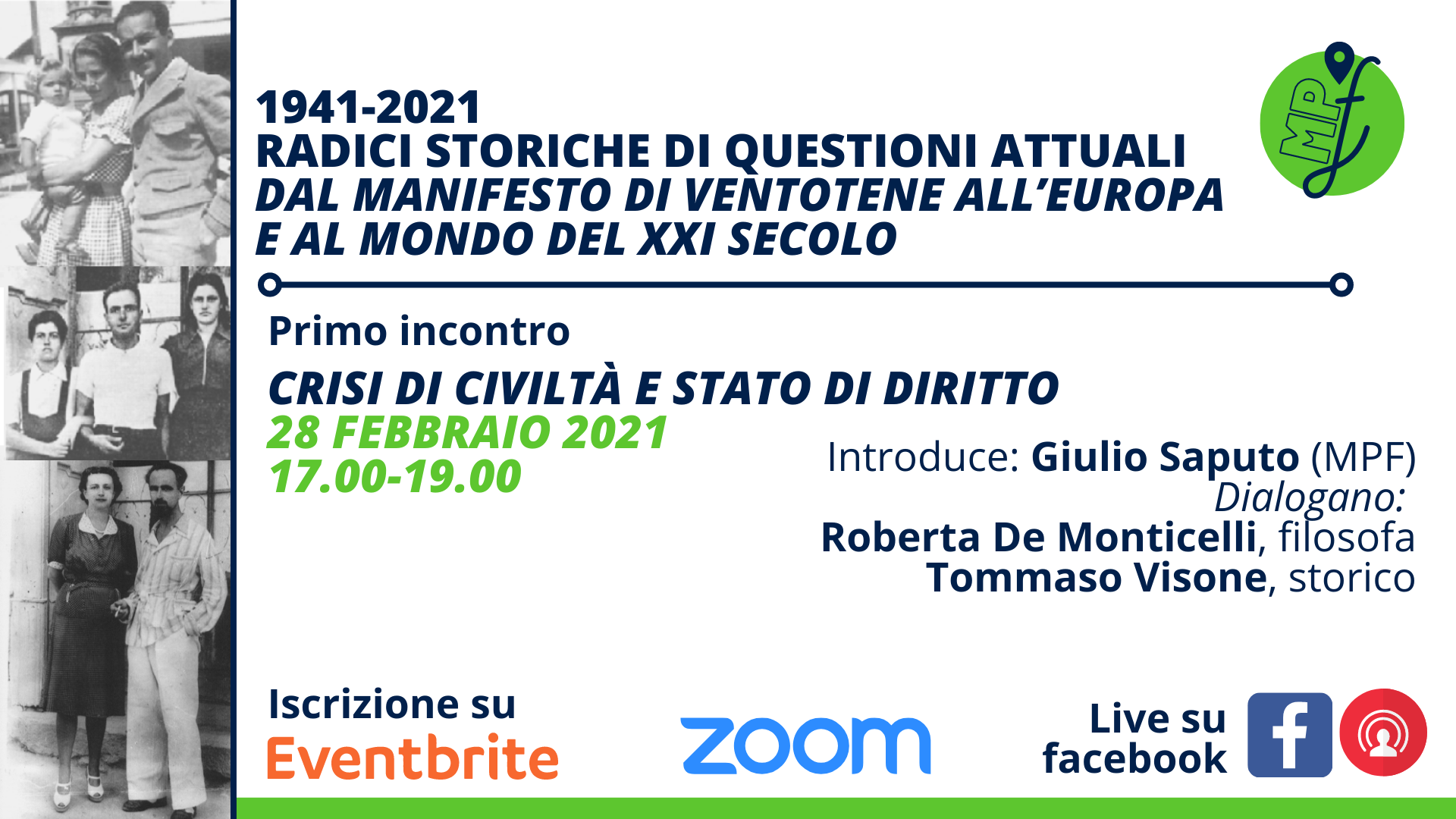 Per partecipare agli incontri bisogna pre-iscriversi su Eventribe all’indirizzo https://www.eventbrite.it/e/crisi-di-civilta-e-stato-di-diritto-dal-manifesto-di-ventotene-alleuropa-tickets-142278860903 (il biglietto è ovviamente gratuito).