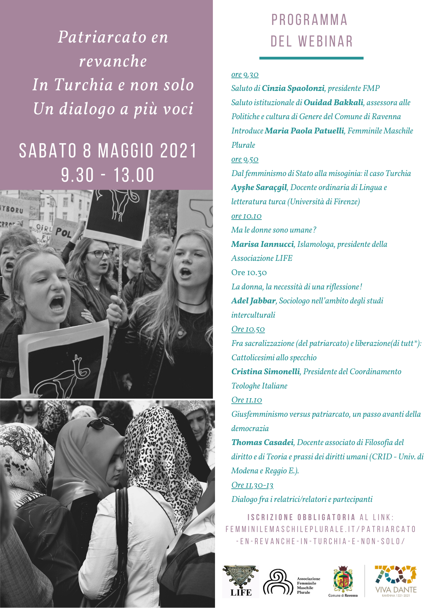 Il webinar è promosso dalle associazioni Femminile Maschile Plurale e LIFE, con il patrocinio dell’assessorato alle Politiche e cultura di genere del Comune di Ravenna.