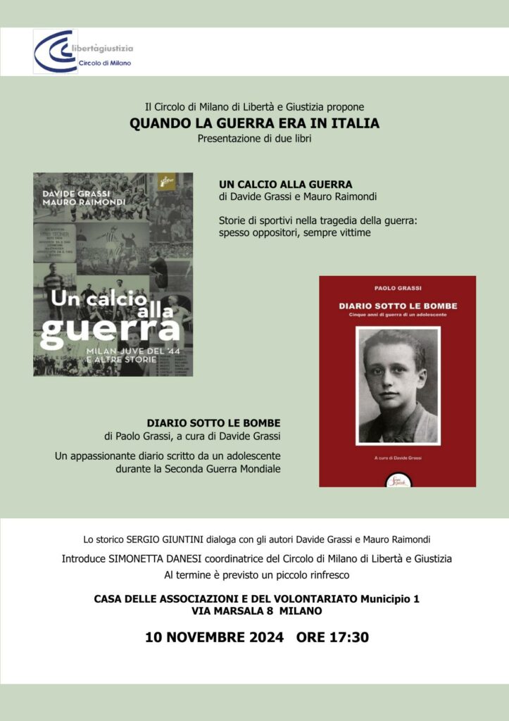 Presentazione dei libri “Un calcio alla guerra” di Davide Grassi e “Diario sotto le bombe” di Paolo Grassi, a cura di Davide Grassi.