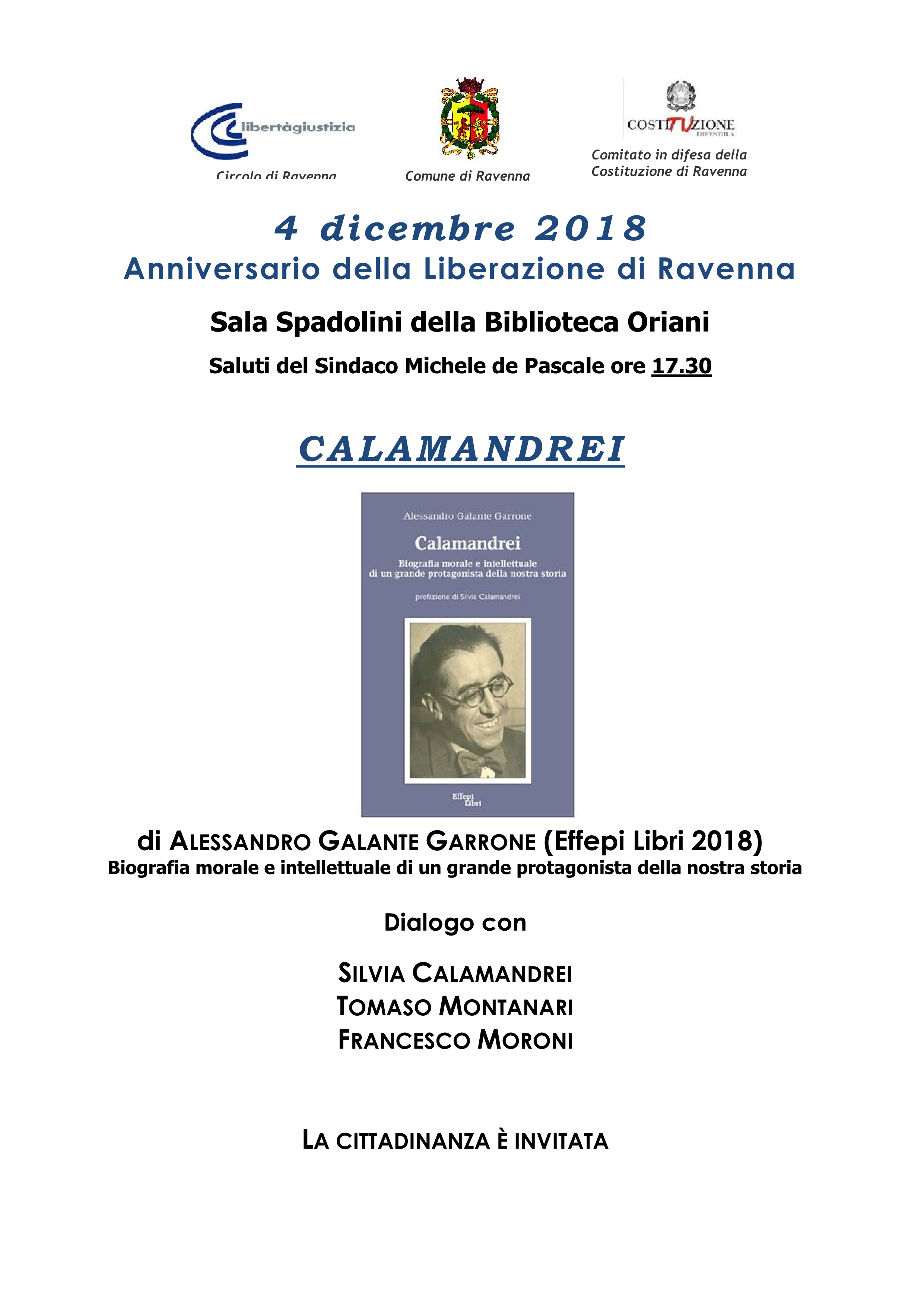 In occasione del 74° anniversario della Liberazione il Comune di Ravenna inserisce nel programma generale dell’anniversario – che vede importanti cerimonie e azioni simboliche dedicati alle tragedie di allora ed una azione teatrale condotta da giovani attori – anche un incontro proposto da Libertà e Giustizia circolo di Ravenna insieme al Comitato in Difesa della Costituzione di Ravenna.