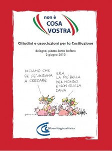 La maglietta della manifestazione e la copia della Costituzione con il manifesto di Gustavo Zagrebelsky
